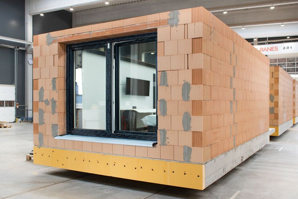 Vorgefertigtes Ziegelmodul mit Fenstern und hochwertiger Innenausstattung.