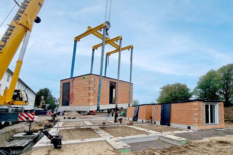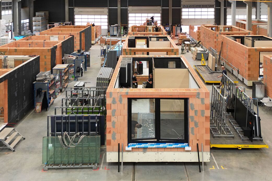 4–8 Monate Projektdauer im Ziegel-Modulbau – gegenüber meist 2 bis 2,5 Jahren im klassischen Bau. Kosten ab ca. 2.900 €/m². Möglich durch industrielle Serienfertigung nach Automotive-Prinzip und präzise Vor-Ort-Montage.