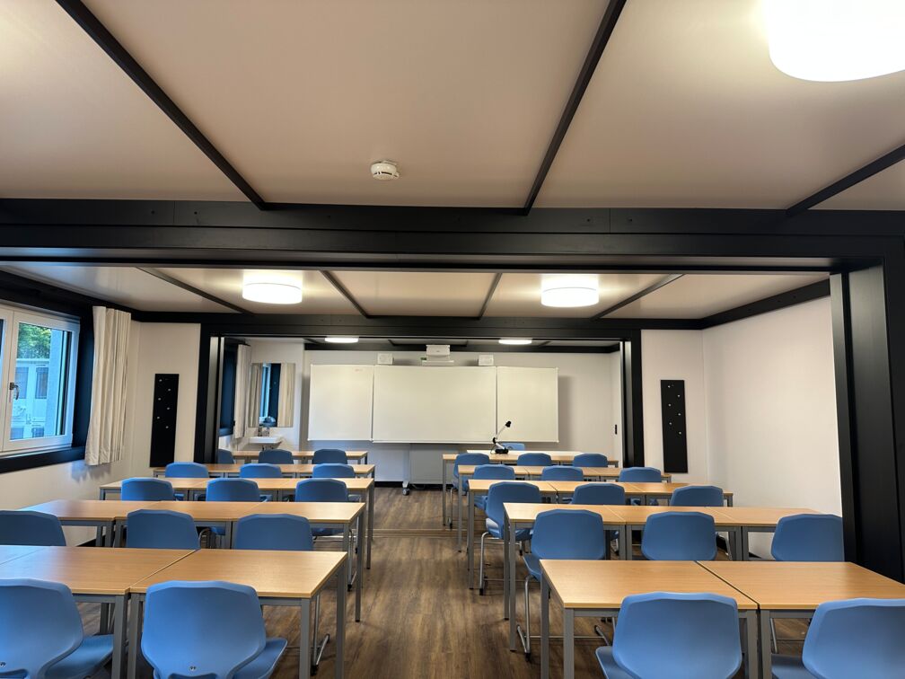 Ein 75 m² Klassenzimmer besteht aus drei Modulen, die aneinandergereiht werden und bietet ausreichend Platz für 30 Schüler. Wie auch bei den Wohnmodulen, sind auch vollausgestattet - lediglich das spezielle Mobiliar für die Einrichtung der Klassenzimmer fällt noch an.