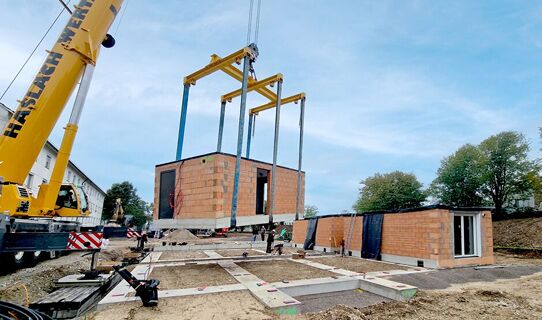 4–8 Monate Projektdauer im Ziegel-Modulbau – gegenüber meist 2 bis 2,5 Jahren im klassischen Bau. Kosten ab ca. 2.900 €/m². Möglich durch industrielle Serienfertigung nach Automotive-Prinzip und präzise Vor-Ort-Montage.